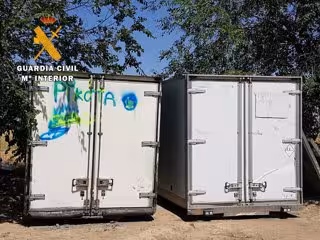 Los agentes comprobaron que otras cuatro cajas de camión, así como el camión sin desguazar, habían sido sustraídos en distintas localidades de las provincias de Toledo y Madrid. La Guardia Civil también halló en el interior de esta finca un perro mastín muerto y encadenado en avanzado estado de descomposición.