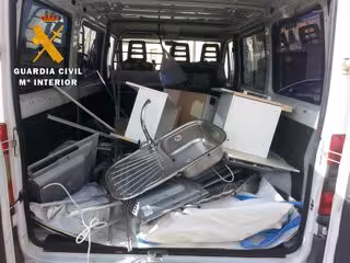Los agentes inspeccionaron la furgoneta, descubriendo en su interior seis radiadores eléctricos, muebles de cocina, fregaderos y diversas piezas de grifería. También comprobaron que las puertas de seis viviendas, aún sin habitar, habían sido forzadas y que los efectos descubiertos en la furgoneta procedían de ellas.