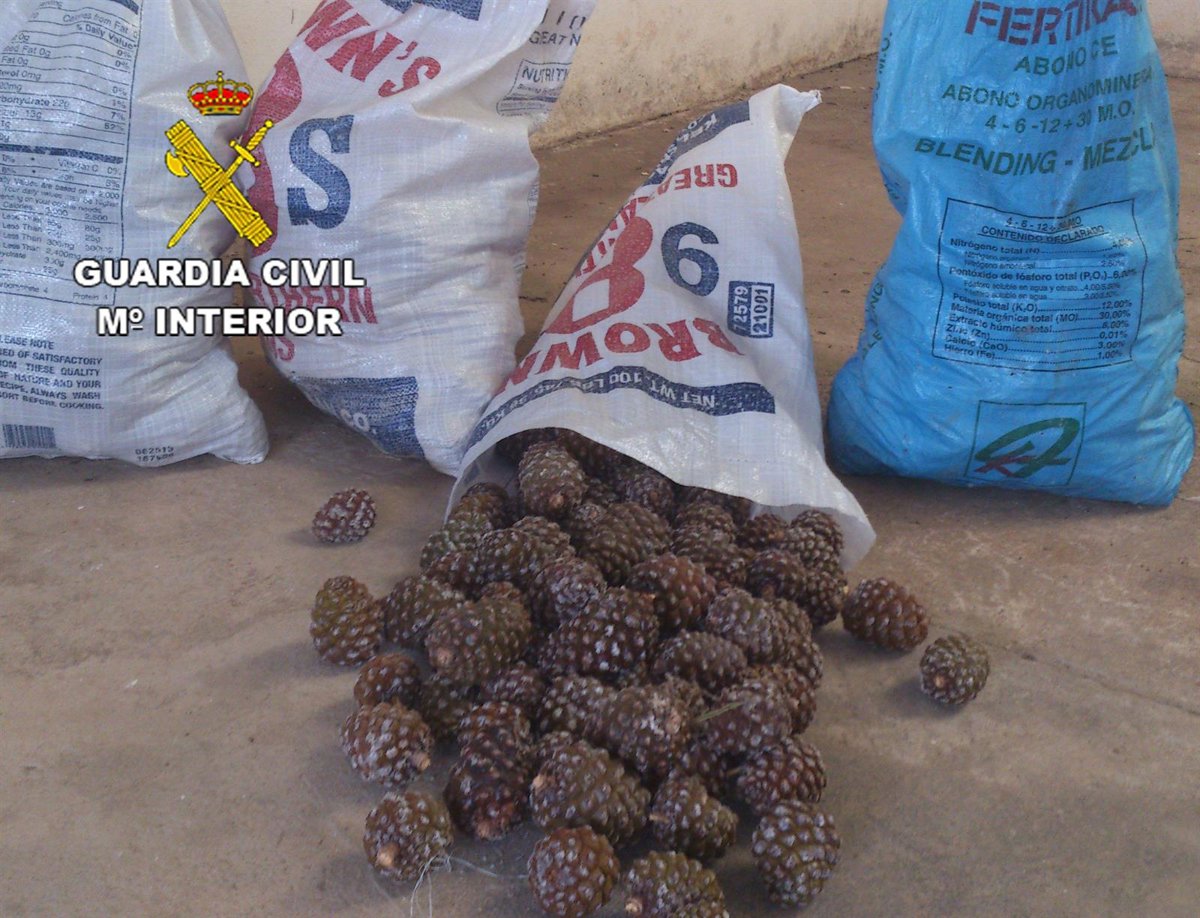 Efectivos de la Guardia Civil de Aguas Nuevas (Albacete), han detenido a dos personas como presuntas autoras de un delito de robo con fuerza en las cosas en una finca del término municipal de la capital, después de acceder al interior de la propiedad tras escalar su muro perimetral y sustraer 140 kilos de piñas piñoneras que habían cargado en varios sacos.