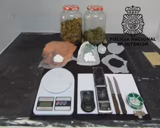 Los efectos intervenidos en la operación son 63 gramos de cocaína, 202 gramos de marihuana, tres balanzas de precisión, restos de recortes de plástico, un rollo de alambre verde, seis frascos con restos de marihuana, dos hojas de papel con anotaciones de nombres y cantidades y una tarjeta micro SIM.