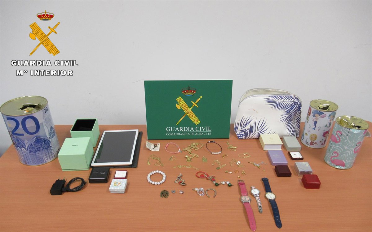 En el robo, ya esclarecido por la Guardia Civil, los autores sustrajeron diversas piezas de oro como cadenas, pendientes, anillos, además de un reloj, una tablet electrónica y unos 1.000 euros del contenido de varias huchas que había en la vivienda, según ha informado la Benemérita en nota de prensa.