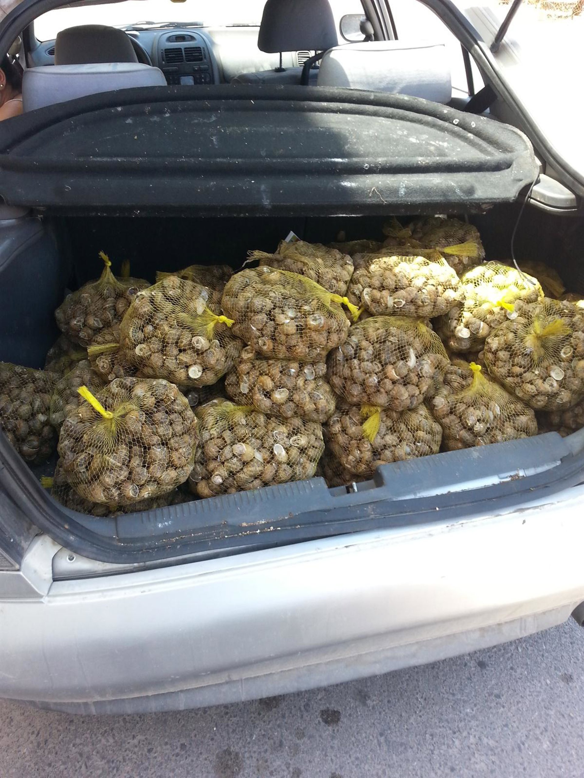Durante la intervención policial e inspección realizada por los agentes, éstos hallaron en el establecimiento donde se vendían los caracoles bolsas-mallas llenas de caracoles en el suelo sin ningún tipo de refrigeración ni cuidado, así como numerosas mallas llenas de caracoles en el interior del maletero del coche, utilizado por uno de los detenidos, y estacionado a pleno sol.