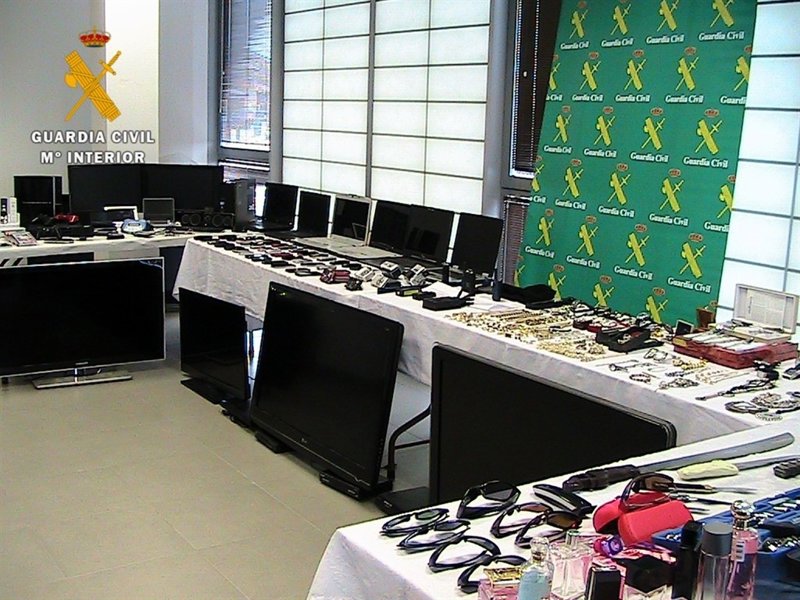 En los registros de las viviendas, los agentes de la Guardia Civil recuperaron numerosos efectos procedentes de los hechos delictivos investigados: joyas, teléfonos móviles, ordenadores portátiles, televisiones, cámaras de fotos, videoconsolas, etc.