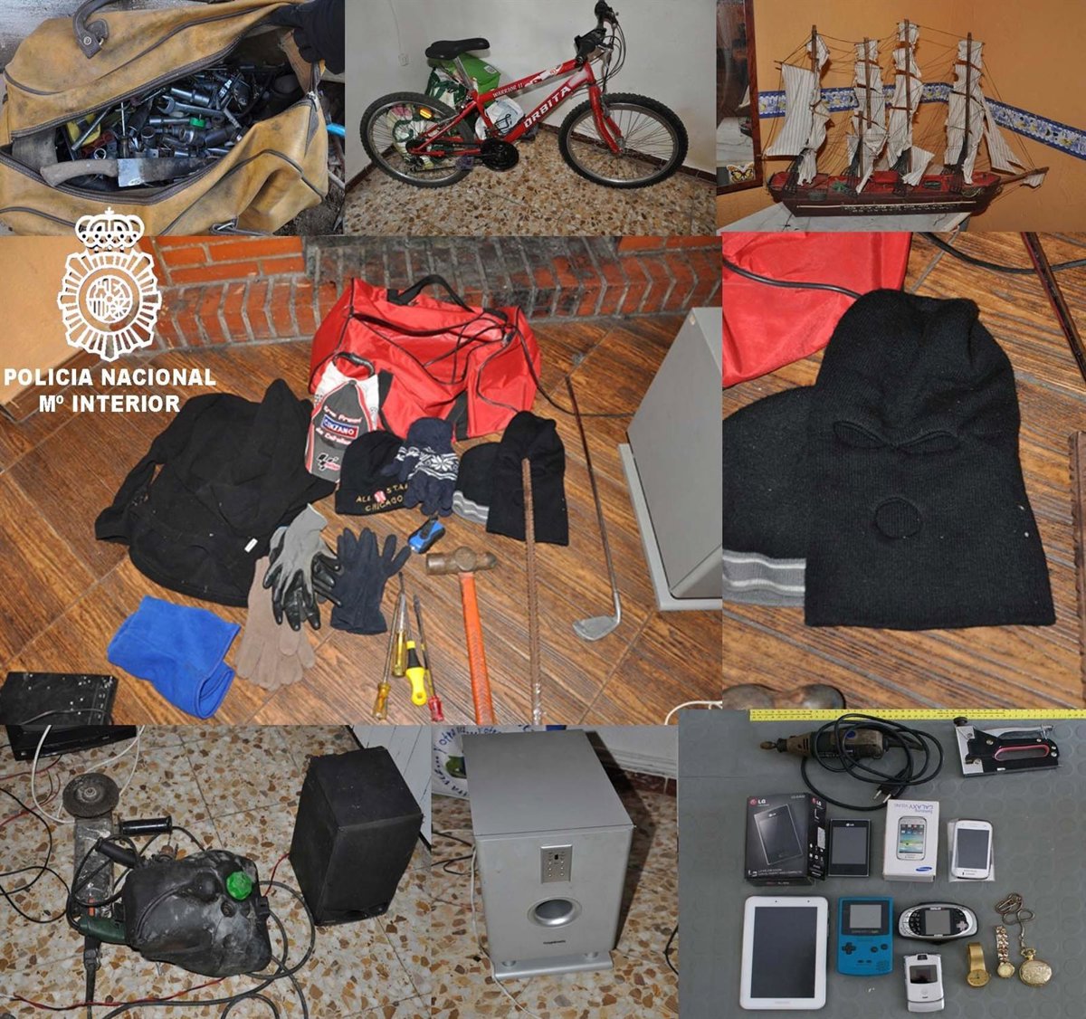 Así, se efectuaron cinco entradas y registros en viviendas pertenecientes a este grupo y se intervinieron numerosos efectos procedentes de la actividad delictiva, así como útiles para perpetrar los robos, armas, pasamontañas, guantes, capuchas y linternas,