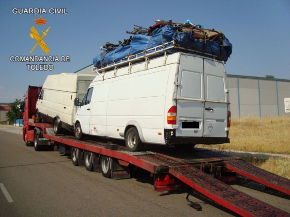La Guardia Civil comprobó que las furgonetas que eran utilizadas para ocultar la maquinaria robada eran propiedad de los detenidos y que la nave industrial había sido alquilada por uno de ellos.