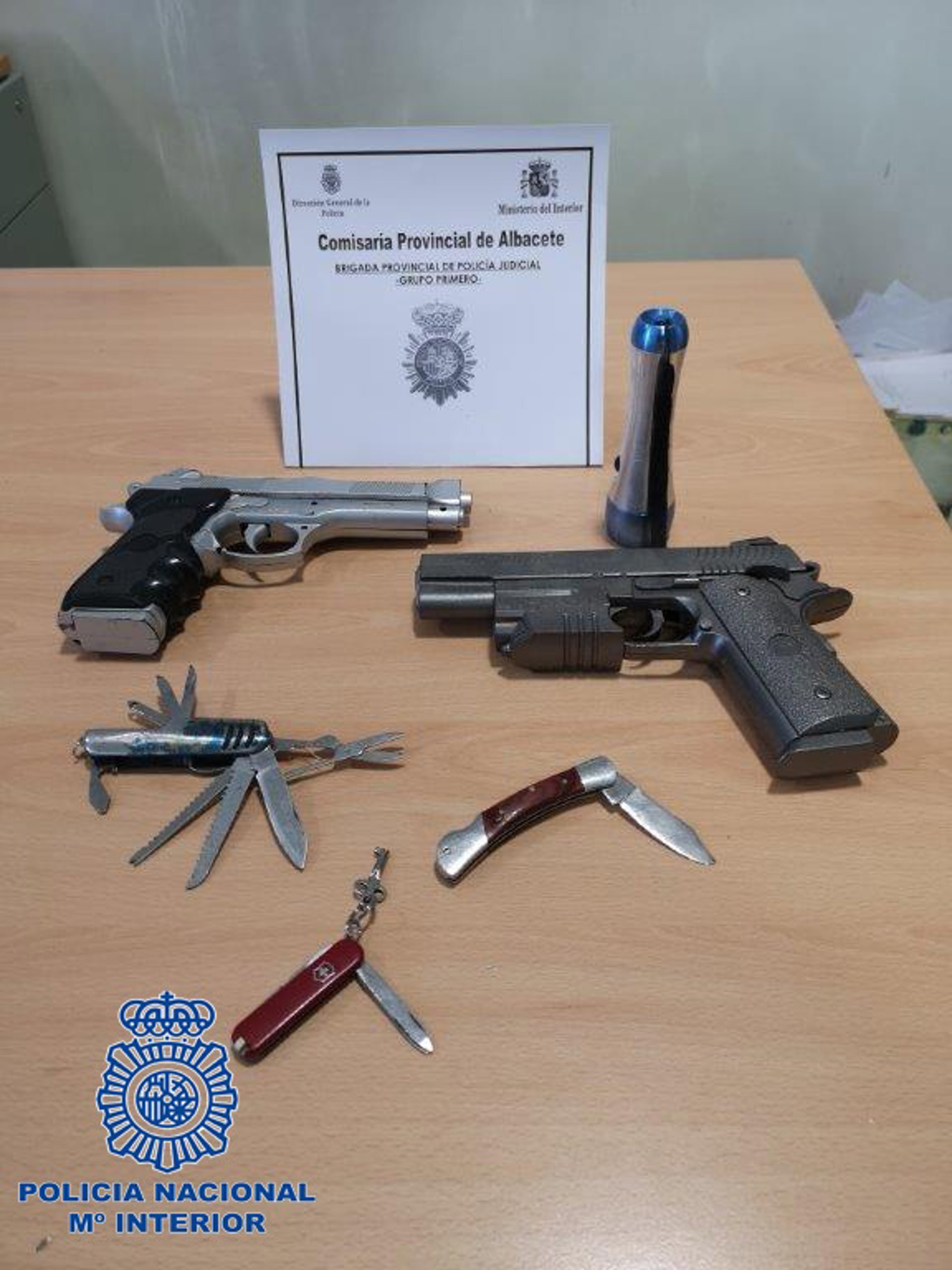 Después de su detención se practicó un registro en su domicilio donde los agentes de Policía Nacional intervinieron varios útiles y prendas de ropa con los que cometía los robos, además de dos pistolas simuladas.