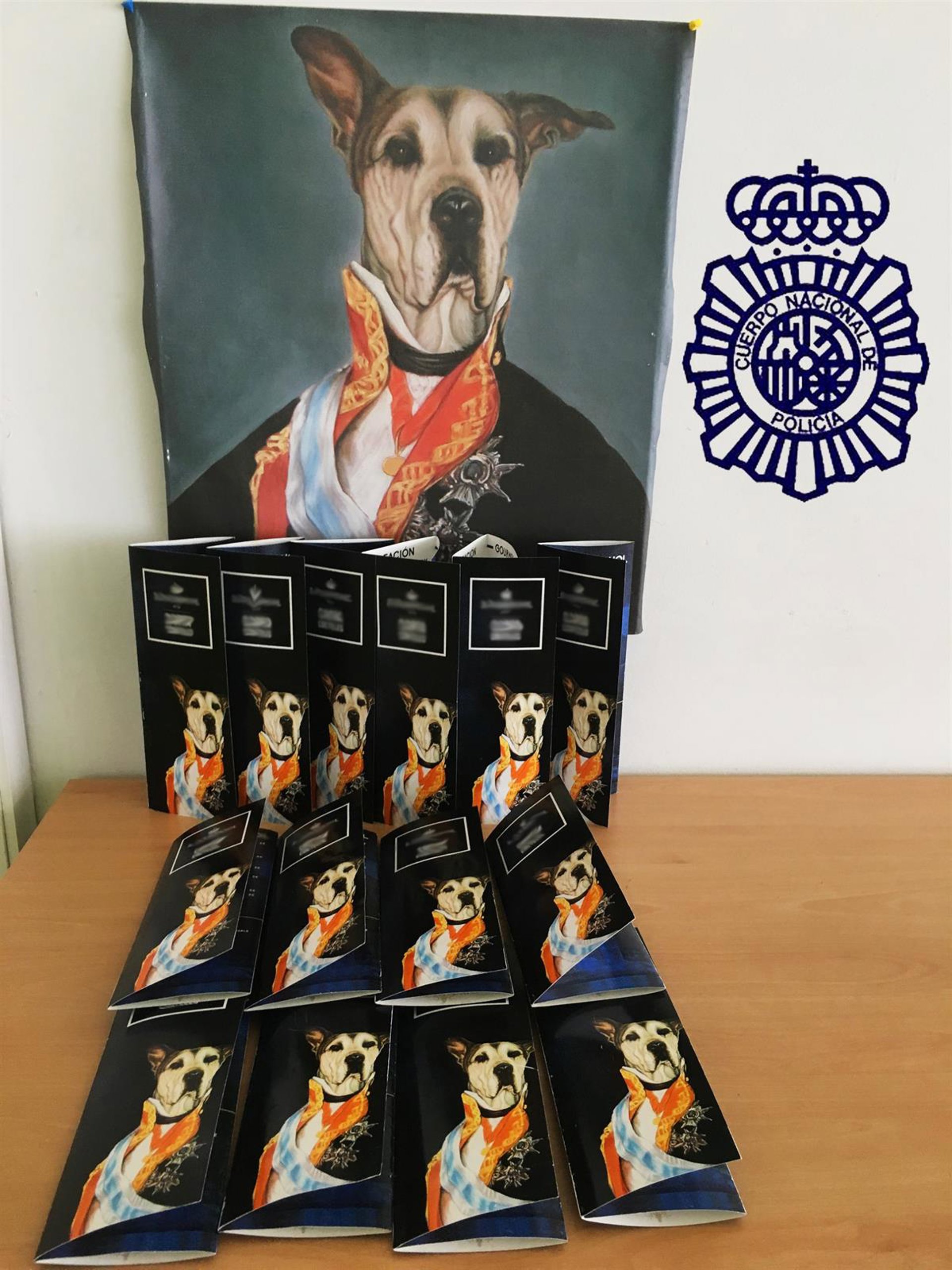 Agentes de la Comisaría de Albacete han procedido a la detención de A.J.L.M., de 33 años de edad, vecino de la capital, por utilizar como imagen comercial del local de copas que regenta, la réplica de una obra pictórica conteniendo la imagen de una mascota canina con vestuario militar de gala de época, pintura protegida por el derecho a la propiedad intelectual.