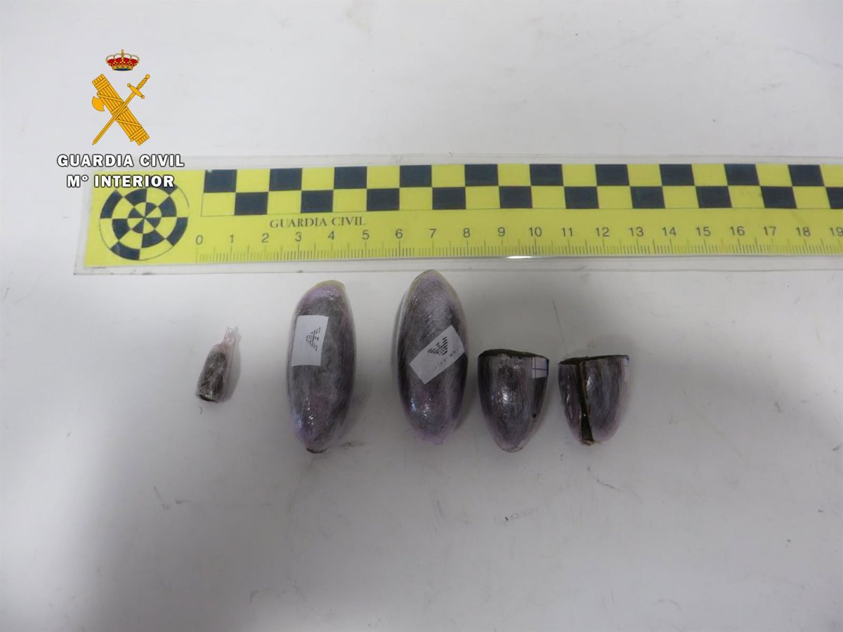 La Guardia Civil comprobó que este hombre, S.CH., ocultaba 34 gramos de hachís, dispuesto en bellotas, entre sus vestiduras y que estaría vendiendo esta droga entre el resto de clientes del establecimiento, por lo que fue detenido como presunto autor de un delito contra la salud pública por tráfico de drogas.