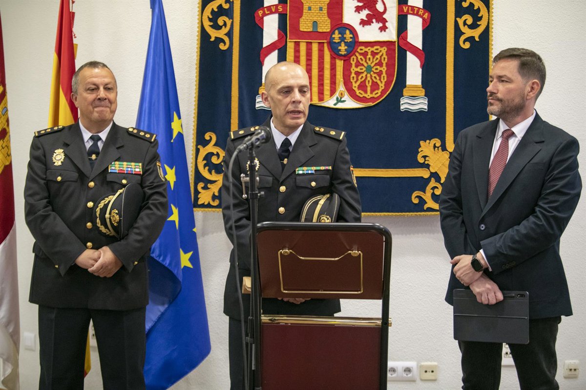 El subdelegado del Gobierno, David Broceño; el comisario provincial de Policía Nacional, José Alberto Camacho, y el jefe provincial de Policía Judicial, Francisco Calzada, informan sobre una operación policial. - EUSEBIO GARCÍA DEL CASTILLO/EUROPA PRESS