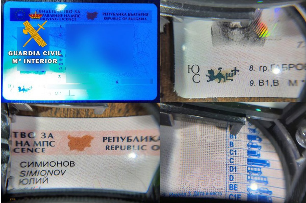 Uno de los conductores facilitó a los agentes, lo que parecía ser un permiso de conducción de la Republica de Bulgaria, visualizando minuciosamente, uno de los guardias civiles, el documento que a simple vista ofrecía dudas sobre su autenticidad.