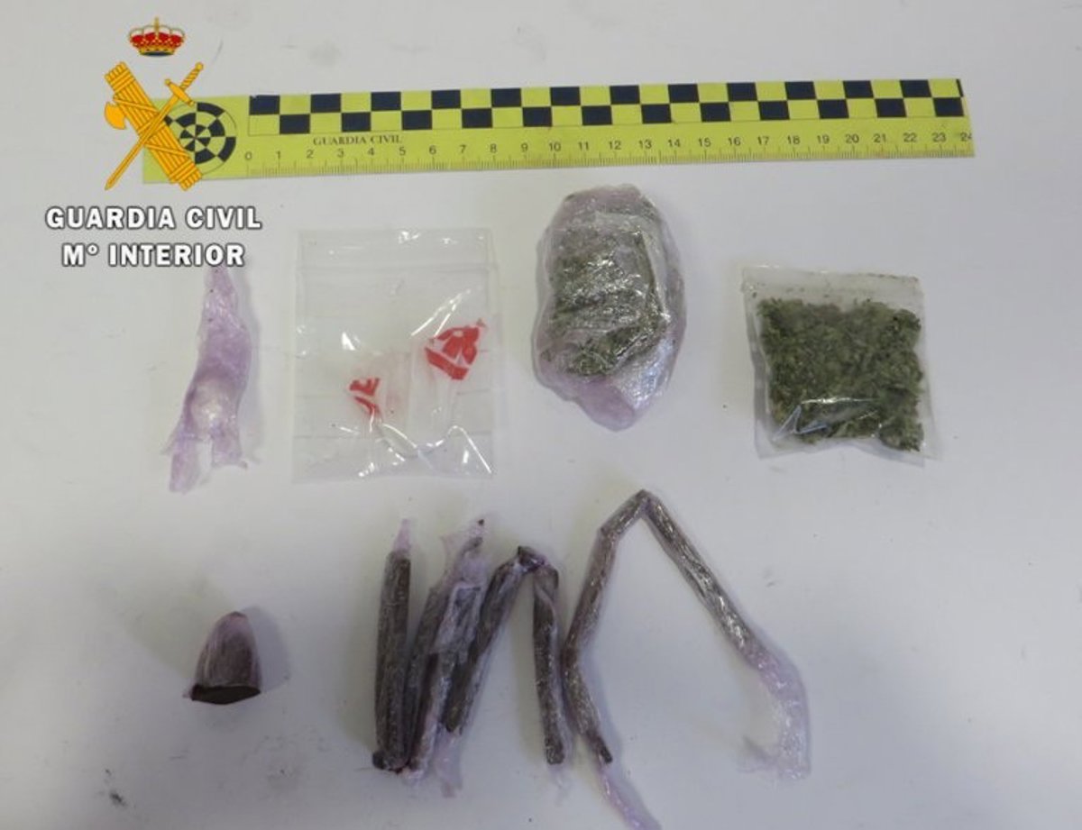 El perro detector de estupefacientes de la Guardia Civil marcó distintos puntos: la caja registradora, la cesta donde estaban depositados los azucarillos y el cubo contenedor de basura. Tras este marcaje, los agentes confirmaron que en estos lugares había 2 gramos de cocaína, 8 gramos de marihuana y 16 gramos de hachís respectivamente.