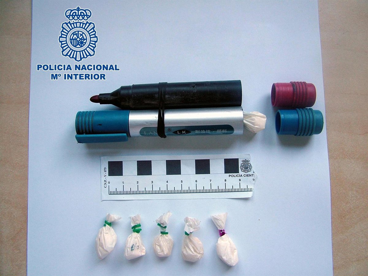 Agentes de la Policía Nacional de Toledo han detenido a un ciudadano de origen colombiano por esconder seis envoltorios de cocaína en el interior de rotuladores.