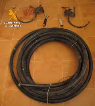La Guardia Civil comprobó que esta persona llevaba puesto en el calzado unos espolones, que había utilizado para trepar por el poste y mantenerse estable mientras cometía el delito.