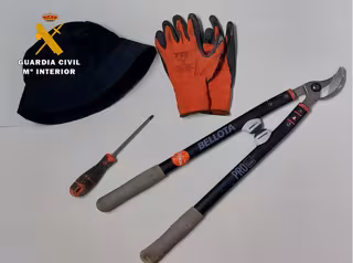 En el momento de la detención, y tras el registro del vehículo, la Guardia Civil localizó en su interior una cizalla de grandes dimensiones y unos guantes utilizados por el autor para la comisión del hecho delictivo.