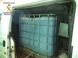 Una vez en la explotación agrícola, los agentes pudieron observar que en el interior de la nave había una furgoneta que se encontraba con el portón lateral abierto y en el interior de la misma, perfectamente preparada, llevaba dos depósitos con una capacidad de 1000 litros cada uno, conteniendo unos 1.400 litros de gasoil, combustible que, como se pudo verificar posteriormente en la investigación policial, procedía de robos cometidos en distintas explotaciones agrícolas.