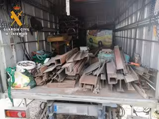 La Guardia Civil comprobó que la entrada de una nave ubicada por donde había sido vista esta persona, había sido forzada y su interior desvalijado, por lo que se pusieron en contacto con su propietario, el cual reconoció como suyo el material que se hallaba en el camión.