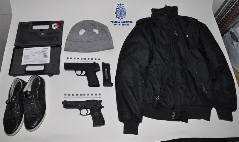 La operación finalizó con la práctica de dos registros domiciliarios, durante los cuales se intervino una segunda pistola, así como la cazadora y pasamontañas que presuntamente se habrían utilizado durante los robos.