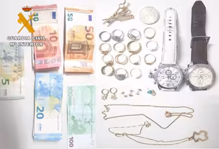 En el registro de sus pertenencias los agentes de la Guardia Civil encontraron dos relojes y varias piezas de oro como anillos, esclavas y collares, así como 535 euros en billetes de distinto valor, de lo que no pudo acreditar su legal pertenencia.