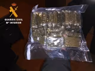 Los agentes comprobaron que estas bolsas estaban llenas de trozos de hachís, que arrojaron un peso total de 12,2 kilos, por lo que la Guardia Civil detuvo a R.B.R. por un delito de tráfico de drogas.
