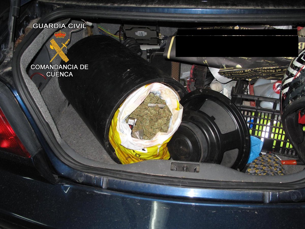 La Guardia Civil de Quintanar del Rey ha detenido a una persona por delito de tráfico de drogas cometido en el kilómetro 61 de la carretera N-320 (Albacete-Guadalajara), dentro del término municipal de Quintanar del Rey, cuando transportaba más de 600 gramos de marihuana en dos bolsas ocultas en el interior de un altavoz.