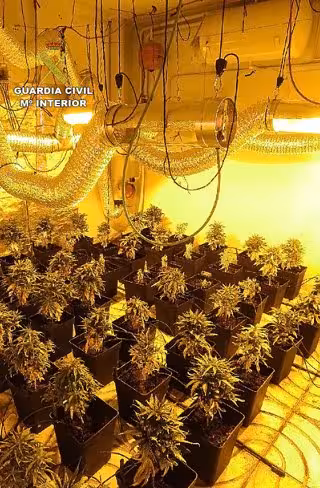 Durante el registro, la Guardia Civil comprobó la existencia de un laboratorio tipo 'indoor' completamente equipado y con un sofisticado sistema de ventilación, de control de humedad y de riego. Además fueron halladas diferentes sustancias y herramientas necesarias para el cultivo, gran cantidad de fertilizantes y productos fitosanitarios.