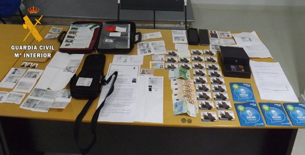 La Guardia Civil detuvo a L.L.R., de 67 años de edad, en la localidad de Villaseca de la Sagra y registró el domicilio en el que vivía, donde halló gran cantidad de fotocopias de DNI, permisos de conducir, tarjetas de residencia, curriculum vitaes, tarjetas telefónicas y una carpeta con test de exámenes de la DGT.
