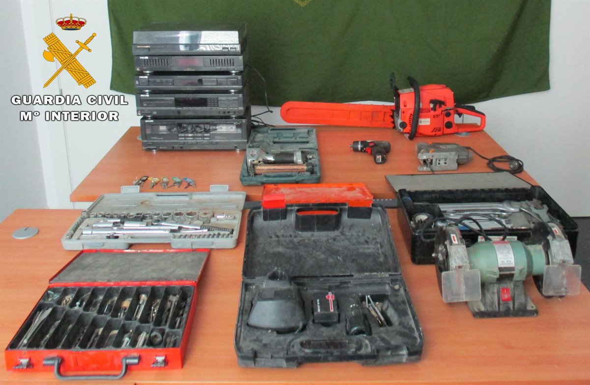 Los efectos recuperados tiene un valor de 4.000 euros. Se trata de herramientas de mano, un taladro eléctrico, una motosierra, una sierra de calar, una pistola neumática y un equipo de sonido.