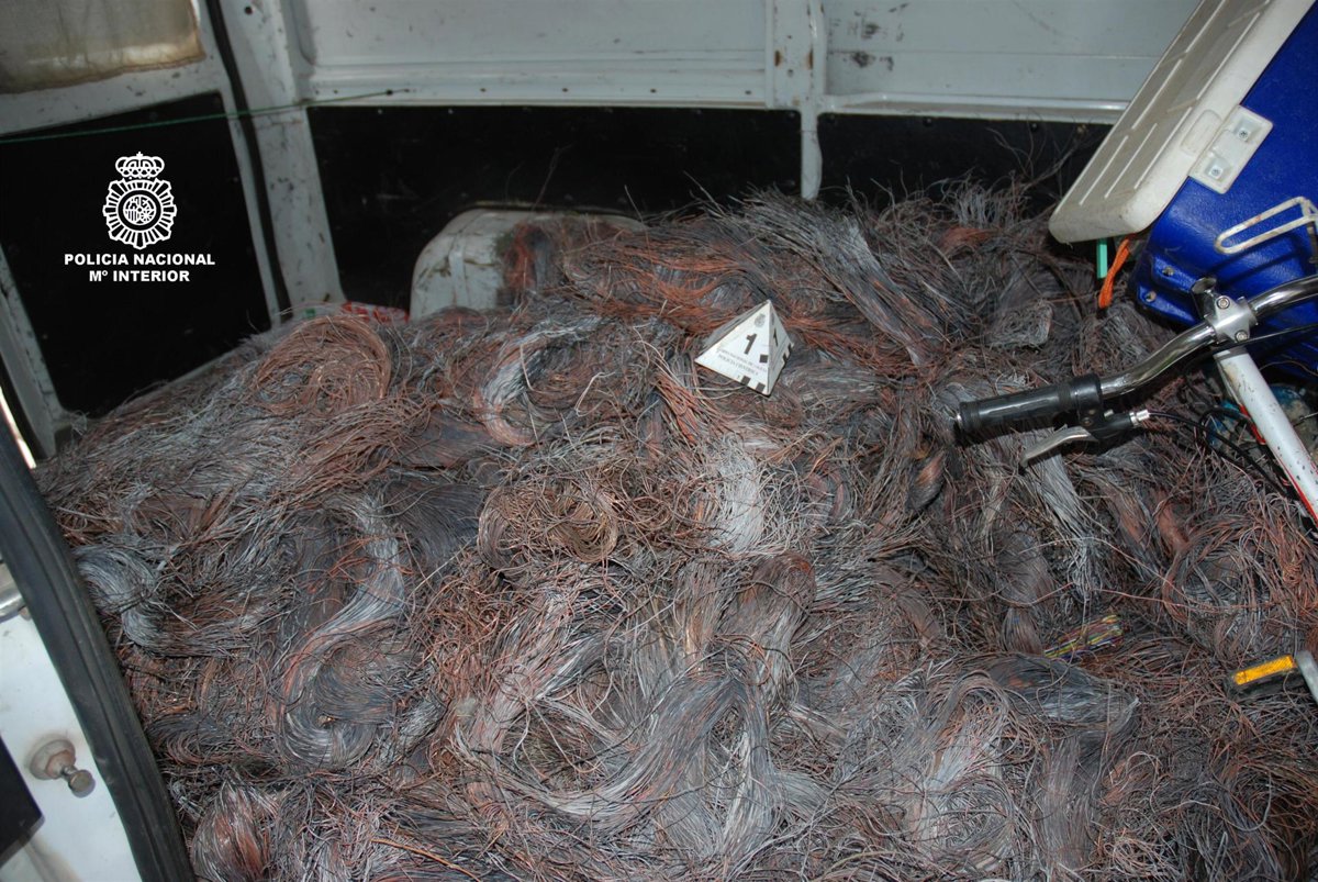 La furgoneta estaba cargada de gran cantidad de cableado eléctrico, ya preparado para su venta. Se trata de cable pelado mediante la quema de su recubrimiento de plástico y convertido en bolas o madejas de las que, una vez aplicado este tratamiento, es imposible determinar su origen. El total del cableado incautado arrojó un peso aproximado de 1.500 kilos de un valor de unos 7.150 euros.