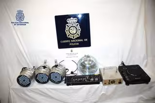 Entre los efectos intervenidos se encuentran un equipo de música, un controlador de luces marca Scanners, un puntero laser, tres focos de iluminación y una bola de discoteca.