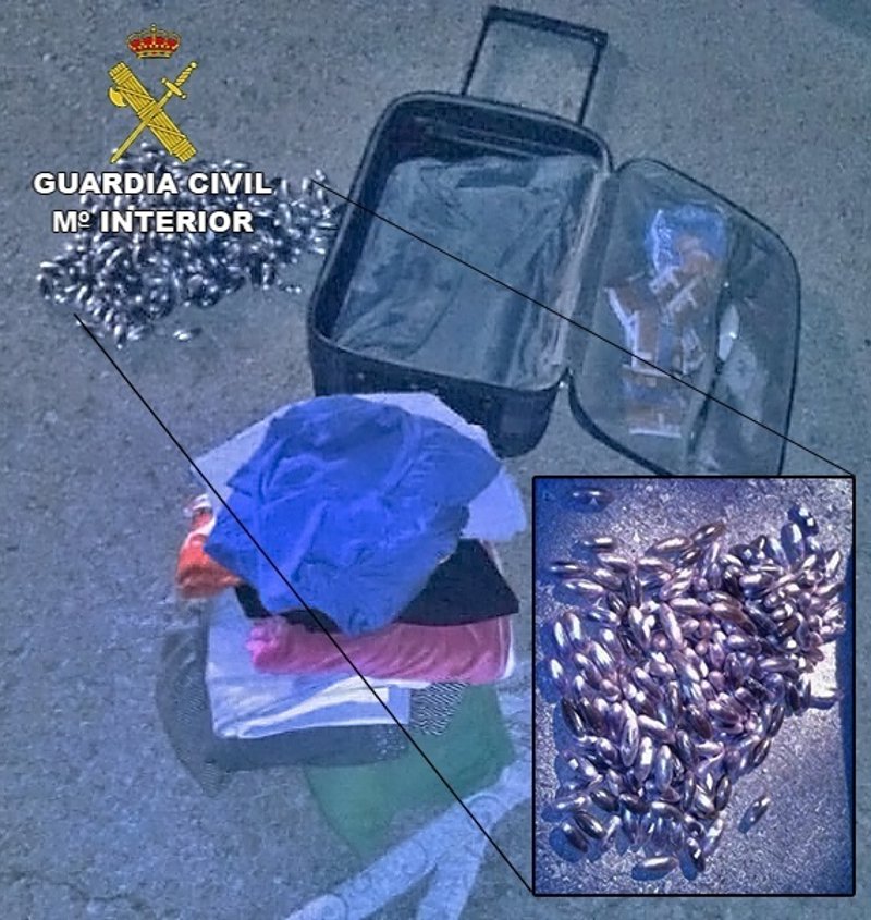 Posteriormente se procedió a la detención de ambos, por un presunto delito de tráfico de drogas, al intervenirles en el equipaje 203 bellotas de hachís que arrojaron un peso total de 2,075 gramos.