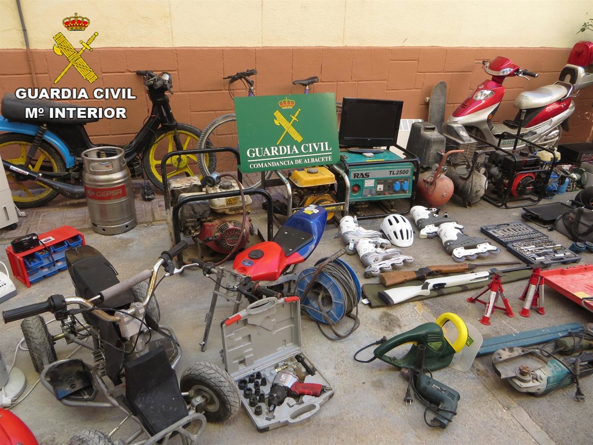 Finalmente, las investigaciones realizadas por el equipo ROCA de la Guardia Civil de Albacete permitieron detener a dos menores de edad como presuntos autores de estos robos y recuperar un televisor de plasma, dos aparatos de aire acondicionado, dos ciclomotores, un quad, cinco bicicletas de montaña, dos escopetas de aire comprimido, cuatro grupos electrógenos y dos compresores, entre otros efectos.