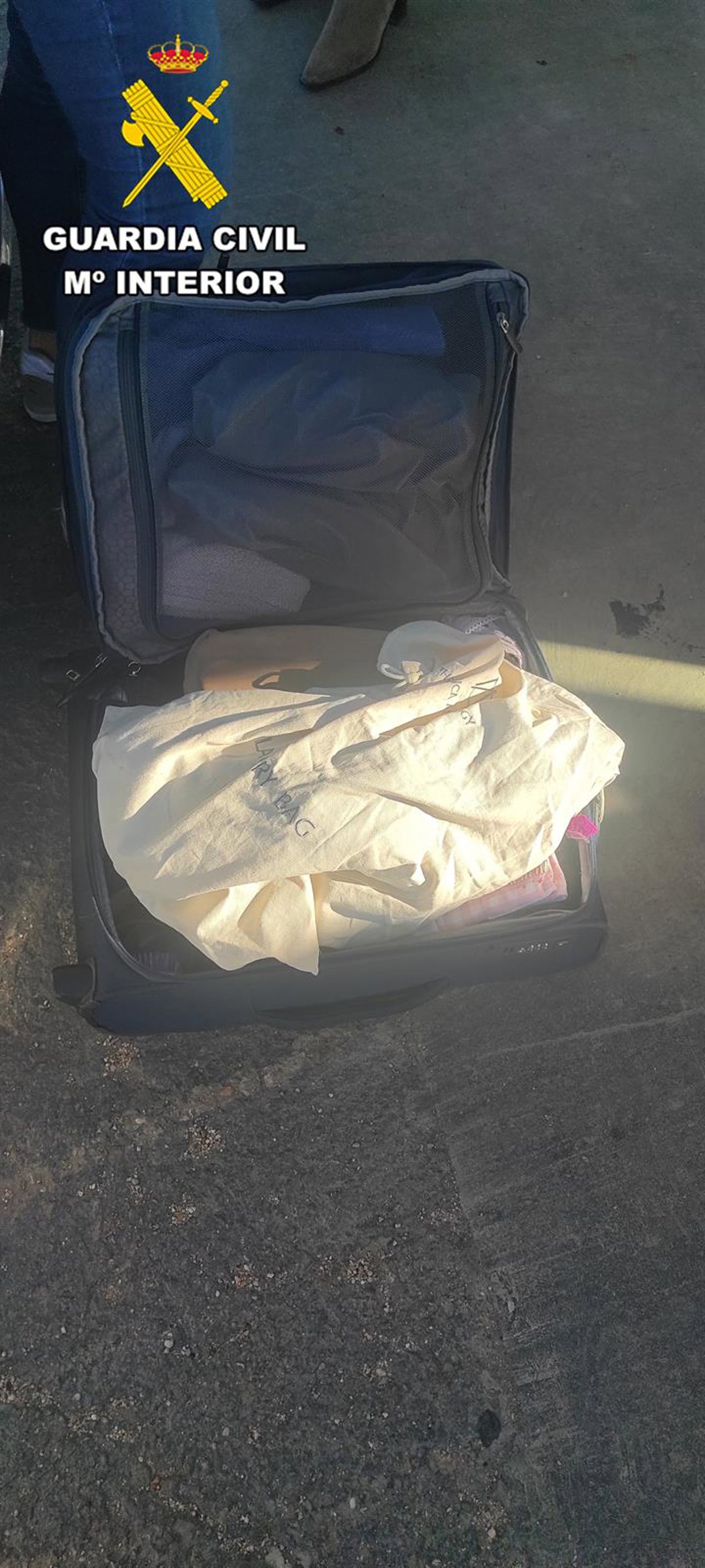 Instantes más tarde, un vehículo ocupado por tres mujeres, se acercan a los guardias civiles, indicando que les habían sustraído una maleta la cual se encontraba en el interior de su vehículo, que estaba estacionado en esta área de servicio, reconociendo la propietaria de esta, la maleta que había sido hallada por los agentes.