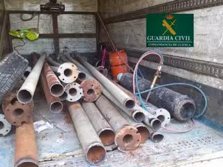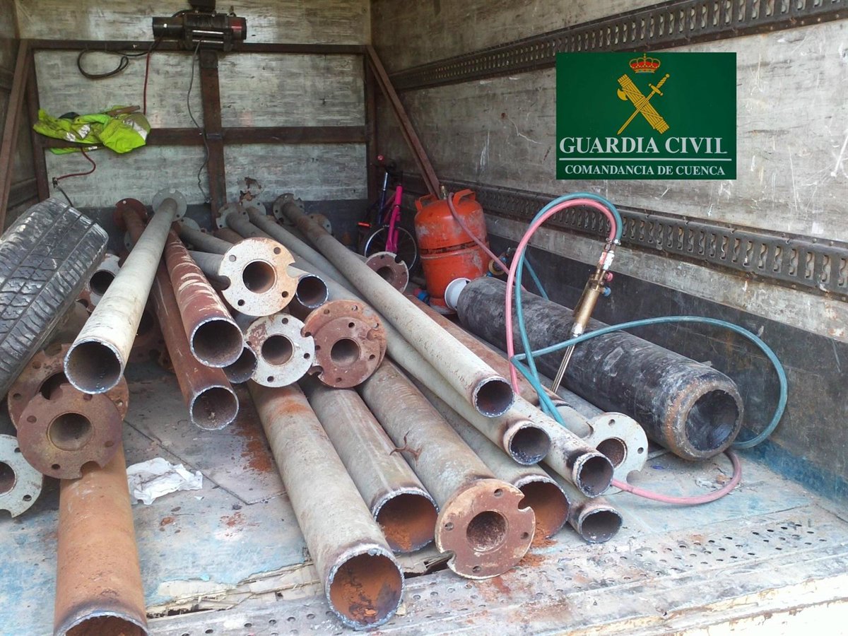 La Guardia Civil ha detenido a tres personas en el momento que sustraían tubos metálicos y los cargaban en una furgoneta en la localidad conquense de Carrascosa del Campo.