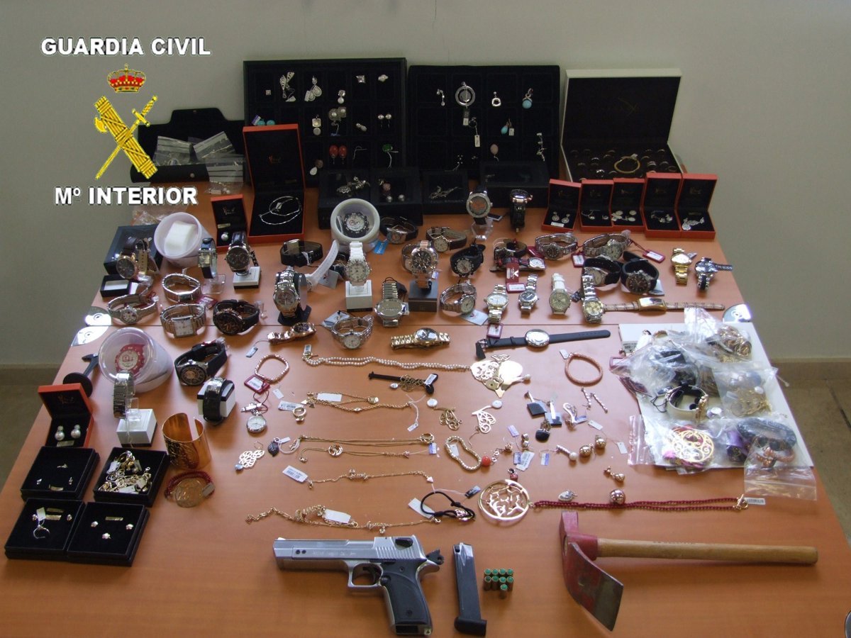 De este modo, les fueron intervenidas una pistola detonadora y varias bolsas con las joyas y relojes sustraídos, por lo que se procedió a la detención como presuntos autores de los hechos de V.A, de 21 años de edad, vecino de Madrid, I.S.R., de 29 años de edad, vecino de Madrid S.M.C., de 19 años de edad, vecino de Cuenca, N.F.M., de 30 años de edad, vecino de Madrid y N.I. de 23 años de edad, vecina de Madrid, todos ellos de nacionalidad rumana.