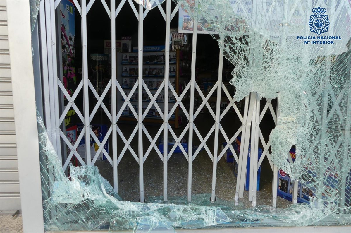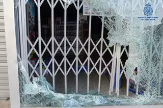 La intervención se inició después de que se activara la alarma del local alrededor de las 4.00 horas del pasado lunes 7 de agosto. Cuando los agentes llegaron al establecimiento, este tenía la luna fracturada y daños en la persiana metálica, además de observarse, marcas de neumáticos en el suelo y una señal rota.