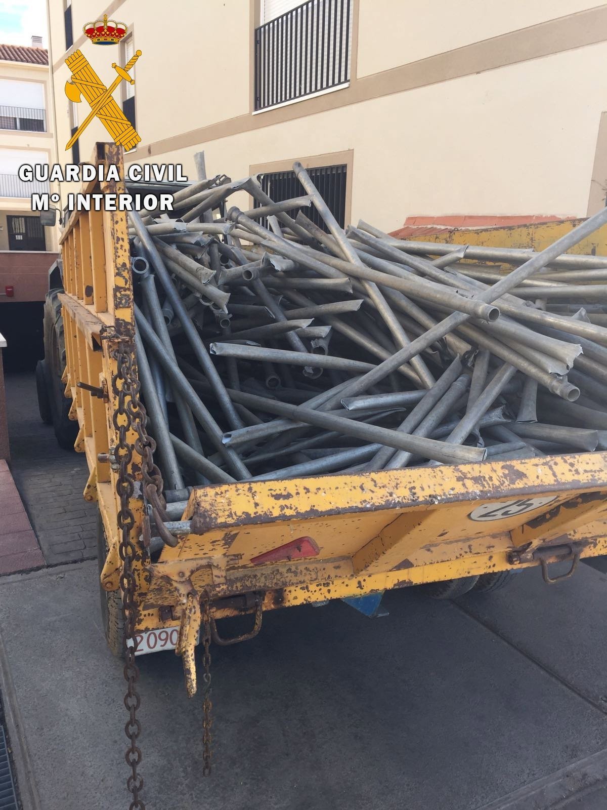 La Guardia Civil ha detenido a una mujer de 31 años, que habitaba en una vivienda 'okupada' en Lominchar (Toledo), por haber robado presuntamente entre 1.200 y 1.400 tubos de regar, de seis metros de largo, de un almacén de aperos de labranza en el municipio toledano de Cedillo del Condado.