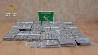 Mientras que el conductor y único ocupante del vehículo era identificado, el perro marcó varias bolsas de supermercado en los asientos traseros como posibles puntos donde pudiese encontrase algún tipo de droga. Allí, los guardias civiles han hallado un total de 420 paquetes envueltos con una sustancia marrón en su interior, concretamente hachís, que arrojaron un peso exacto de 46,7 kilogramos.