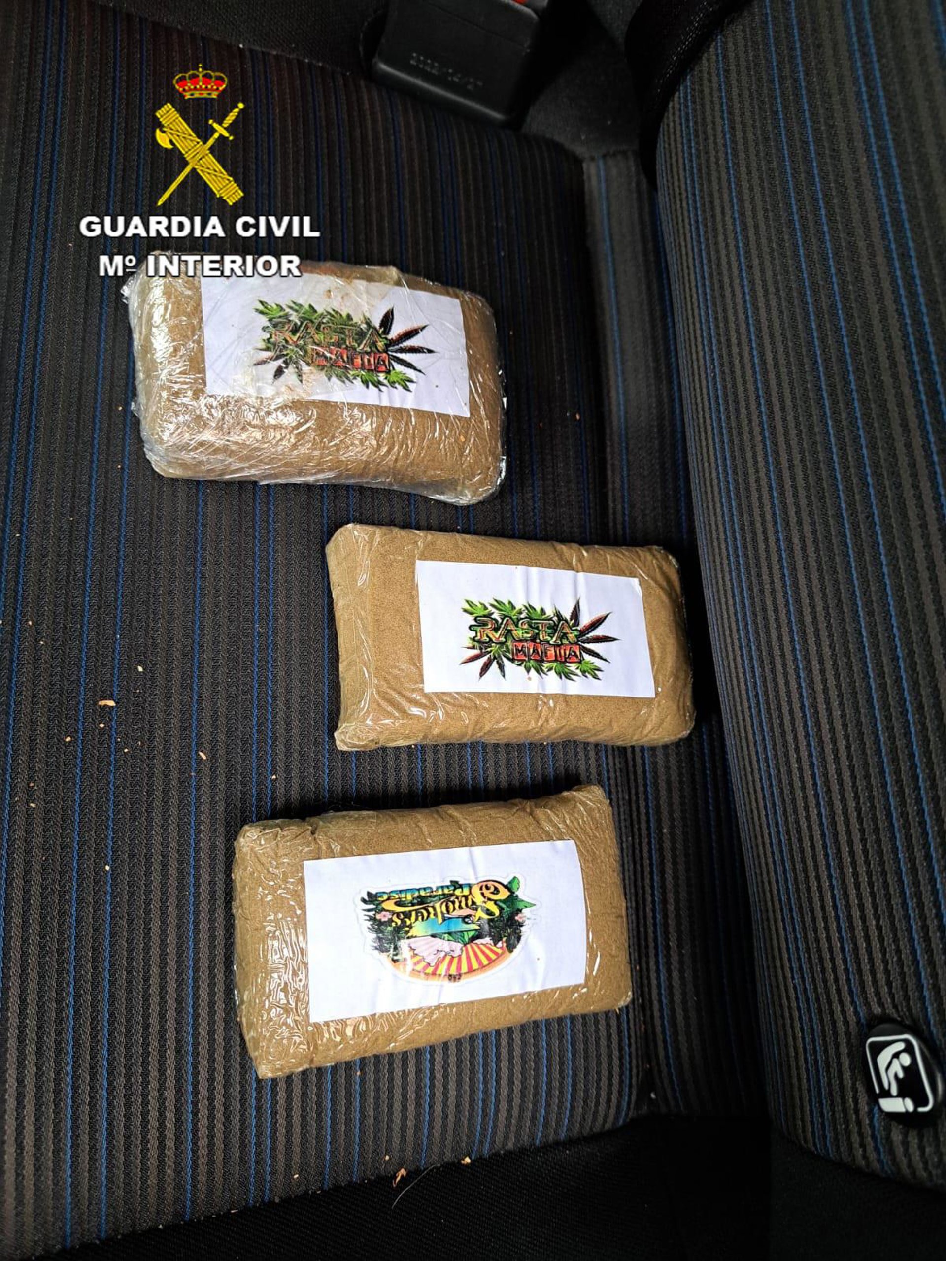 Agentes de Seguridad Ciudadana del Puesto Principal de Azuqueca de Henares, tras proceder a la identificación de dos personas involucradas en un altercado en la vía pública, localizaban en el interior del maletero de su turismo tres tabletas empaquetadas de una sustancia compacta y resinosa de color marrón, de similares características al hachís, con un peso aproximado de 100 gramos cada una, según ha informado el Instituto Armado en nota de prensa.