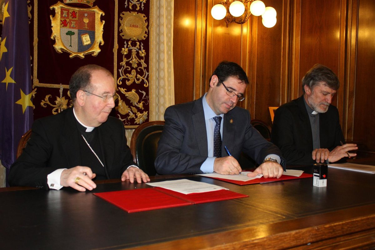 La Diputación provincial y el Obispado de Cuenca han firmado este viernes un convenio de colaboración para la restauración y conservación de bienes patrimoniales y culturales propiedad de la Iglesia por un importe de 100.000 euros, financiados a partes iguales por ambas instituciones.