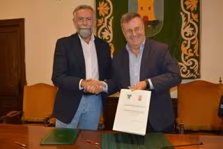 El presidente de la Diputación de Toledo, Arturo García-Tizón, y el alcalde de Talavera de la Reina, Jaime Ramos, han firmado este viernes un convenio de cooperación económica. En esta ocasión, la inversión de 600.000 euros irá destinada a la adquisición del equipamiento necesario para darle un uso adecuado a El Salvador, monumento mudéjar de la ciudad.