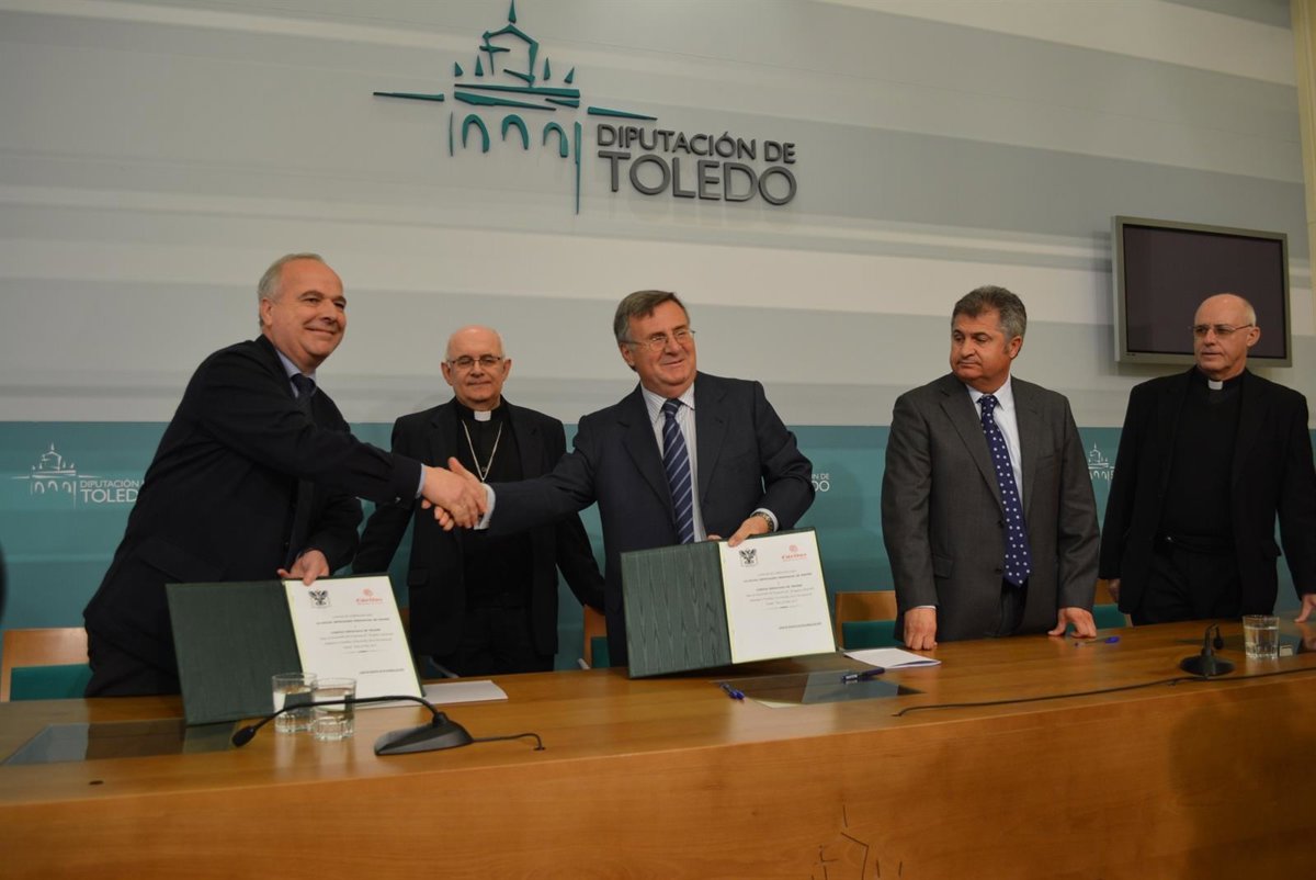 En la firma de este acuerdo también han estado presentes el obispo auxiliar de Toledo, Ángel Fernández Collado, el delegado episcopal de Cáritas Diocesana de Toledo, José María Cabrero, y el diputado provincial del área de Acción Sectorial y Desarrollo Rural, Pedro Casas.