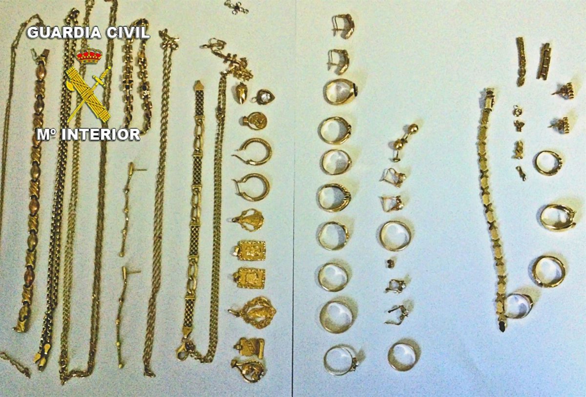 Continuando con las gestiones, se intervinieron en un establecimiento especializado de la localidad de Campo de Criptana numerosas joyas todas ellas de oro por un valor de 7.000 euros, las cuales fueron vendidas por uno de los detenidos.