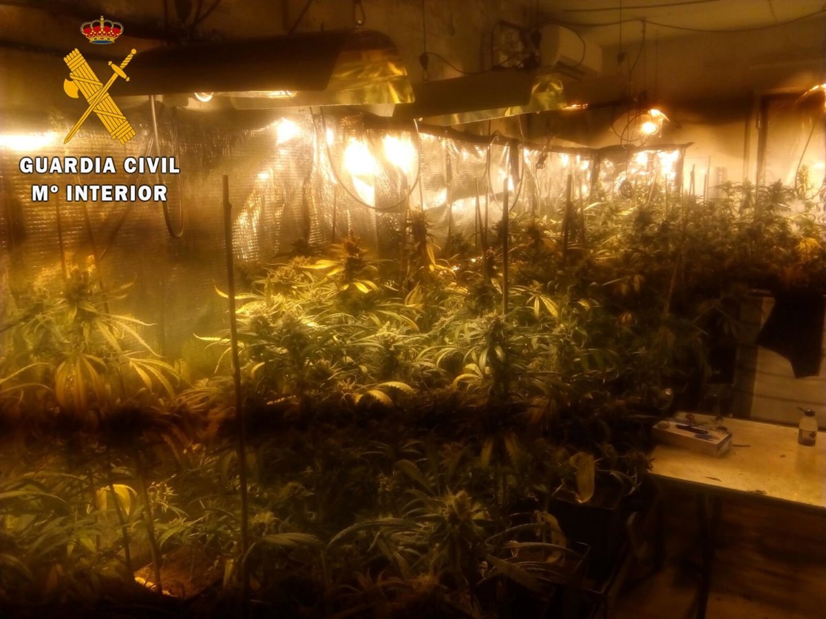 La Guardia Civil comprobó que estos hombres habían habilitado toda la parte correspondiente al sótano de una antigua vivienda como laboratorio interior para la plantación de marihuana, interviniendo 416 plantas. Muchas de estas plantas, que ya estaban recolectadas y deshojadas, estaban siendo manipuladas para su distribución.