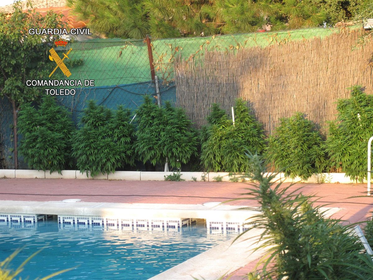 La primera actuación fue realizada por la Guardia Civil de Santa Olalla quien, tras obtener la autorización judicial correspondiente, realizó un registro domiciliario en una vivienda ubicada en una urbanización de la localidad de El Casar de Escalona e intervino 19 plantas de marihuana que estaban siendo cultivadas en parte del perímetro de la piscina de esta propiedad. Las plantas arrojaron un peso de 36 kilos.