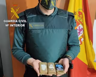 La Guardia Civil de Guadalajara ha detenido a dos personas en el término municipal de Mondéjar, como presuntos autores de un delito contra la salud pública por tráfico de drogas. En el momento de la detención se les intervinieron tres tabletas de hachís con un peso de 300 gramos.