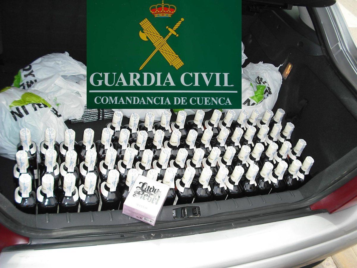 La Guardia Civil de Tarancón ha detenido a I.P. y D.D.I., ambos de 26 años, como presuntos autores de un delito de hurto después de robar, entre otros efectos, un total de 63 botellas de whisky de un supermercado de la localidad.