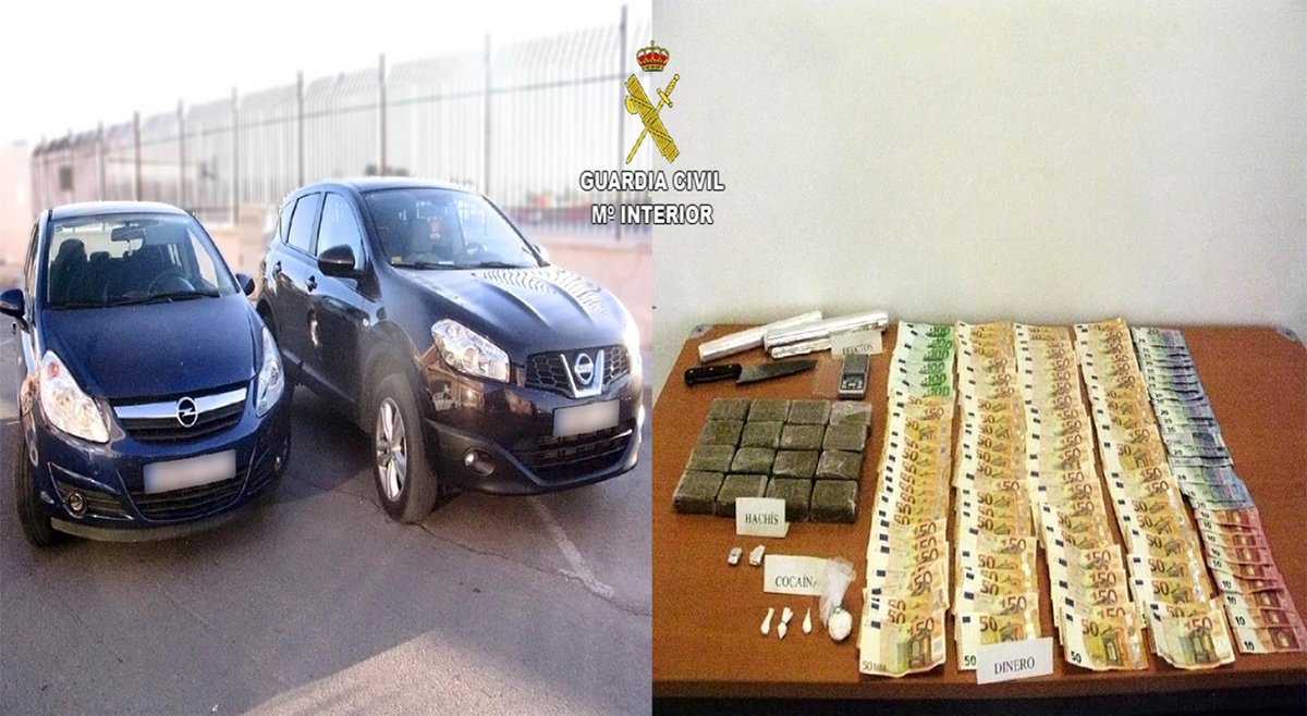 Finalmente el pasado 19 de junio se procedió a realizar un registro domiciliario en la vivienda de los detenidos en la que se intervinieron 16 bloques de hachís, 11,6 gramos de cocaína, 5.300 euros en metálico, dos vehículos y diferentes efectos para el corte y preparado de las sustancias estupefacientes.