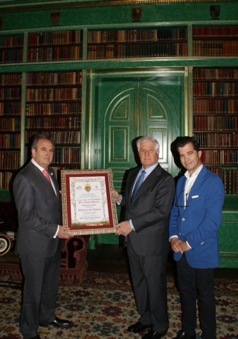 El alcalde de El Toboso (Toledo), Marciano Ortega y el artista toledano Alberto Romero, han sido recibidos en el Palacio de Liria de Madrid, por el Duque de Huéscar, Carlos Fitz James Stuart, a quien le han entregado el nombramiento de Dulcinea del Toboso, a título póstumo, a la duquesa de Alba, Cayetana Fitz James Stuart y Silva, por los méritos realizados durante su vida de apoyo y mecenazgo a la cultura.