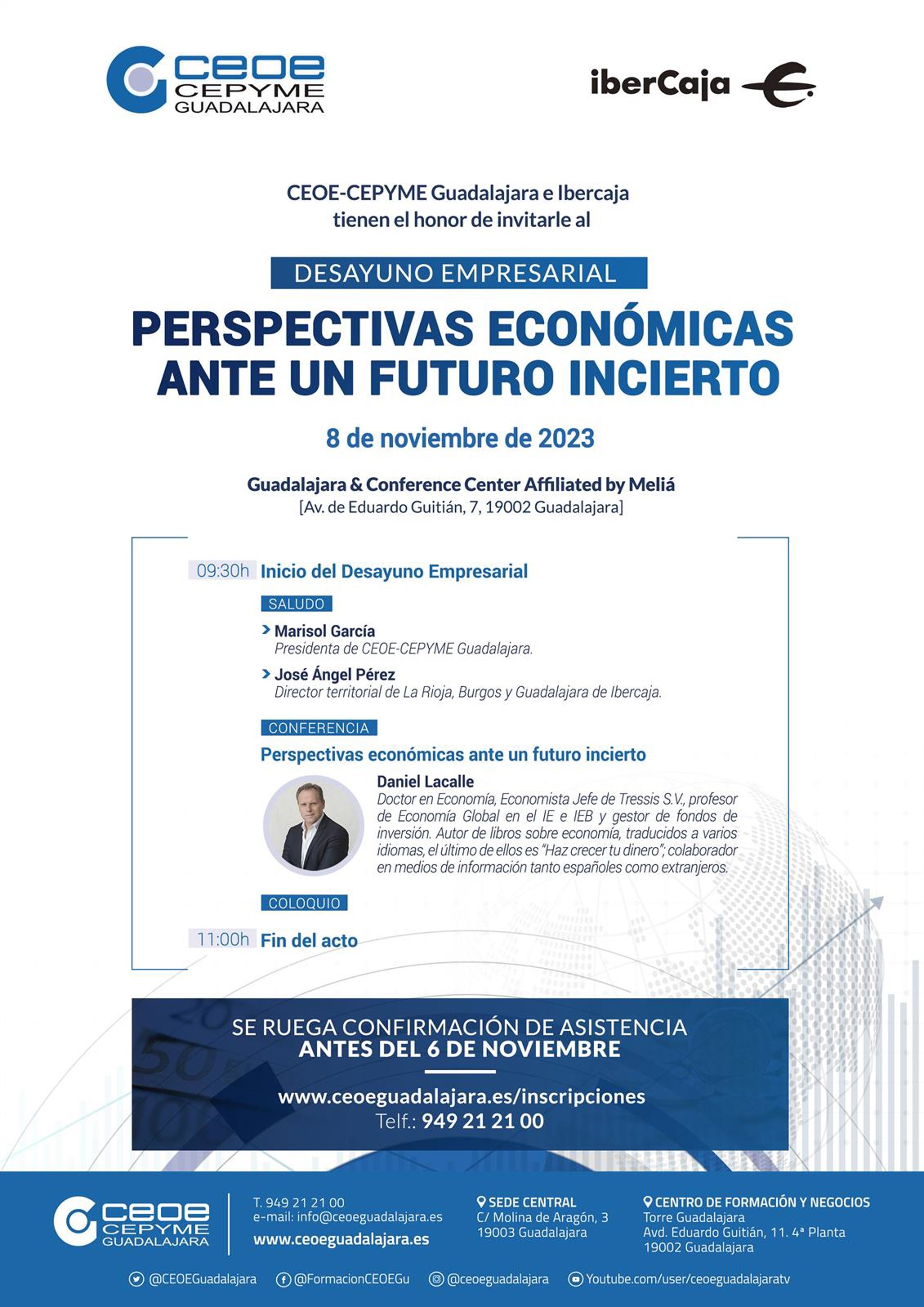 Cartel del desayuno organizado por CEOE-Cepyme en Guadalajara en el que participará el economista Daniel Lacalle - CEOE-CEPYME GUADALAJARA