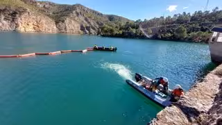 La operación ha consistido en la contención de un supuesto derrame de hidrocarburos. Se ha realizado en el entorno de coronación de la presa, para lo que ha habido que realizar un despliegue de embarcaciones en el embalse y diversos medios de elevación.